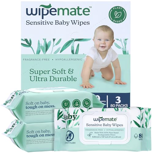 🌱 WIPEMATE BABY WIPES ARE FOR EVERYONE! 🌟 Ultra-Gentle, Super Soft Pack: Get your hands on the cuddliest companion for you & your baby’s skin with our Wipemate Premium Wipes. Discover three packs of 80 angel-soft wipes inside every box, each measuring a generous 6.69 x 7.87 inches. Crafted from heaven-sent 100% plant-based materials infused with 99% pure water, these wipes are alcohol-free, pH-balanced, and designed with love for the most sensitive skin. They’re dermatologically blessed, hypoallergenic, and fragrance-free to protect your baby’s precious skin barrier like a gentle hug.
