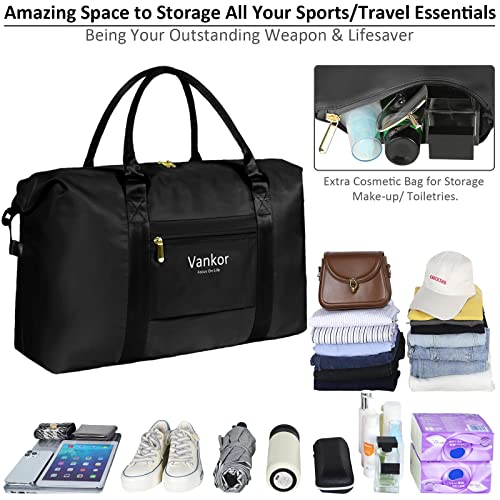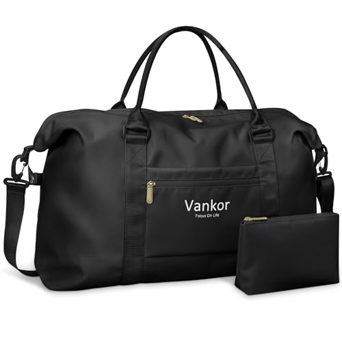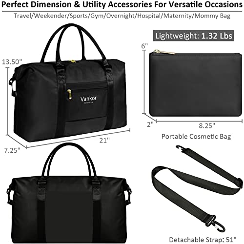 Large Duffle Bag for Travel Waterproof 21 Inch, Vankor Gym Duffel Bag for Women Men Durable Carry on Weekender Overnight Sports Luggage Weekend Beach Yoga Workout Hospital Mommy Diaper Bag Black